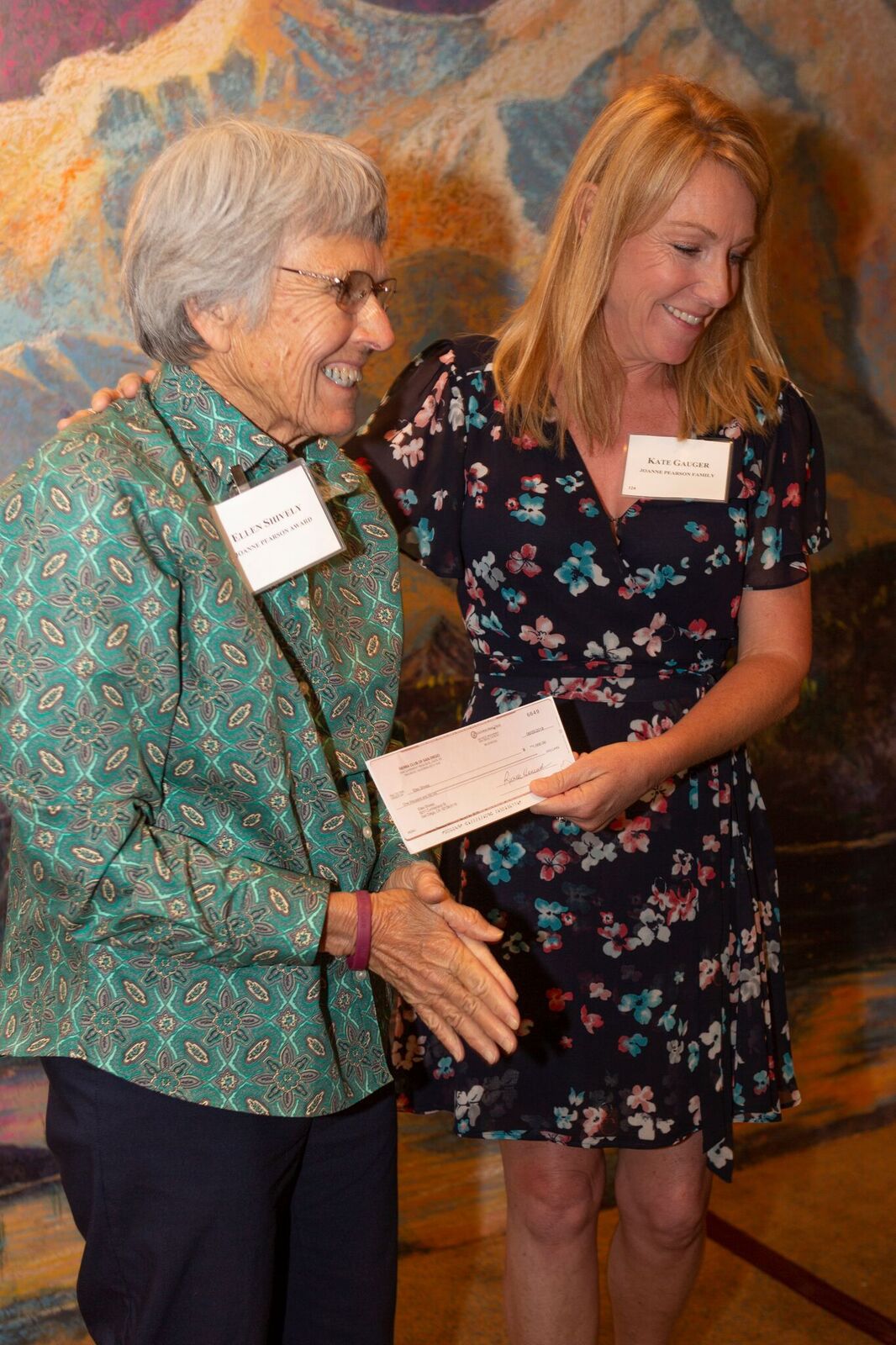 - Ellen Shively accepting the Joanne H. Pearson Memorial Award in Environmental Public Advocacy and a check for $1,000 from Kate Gauger, daughter of Joanne H. Pearson.