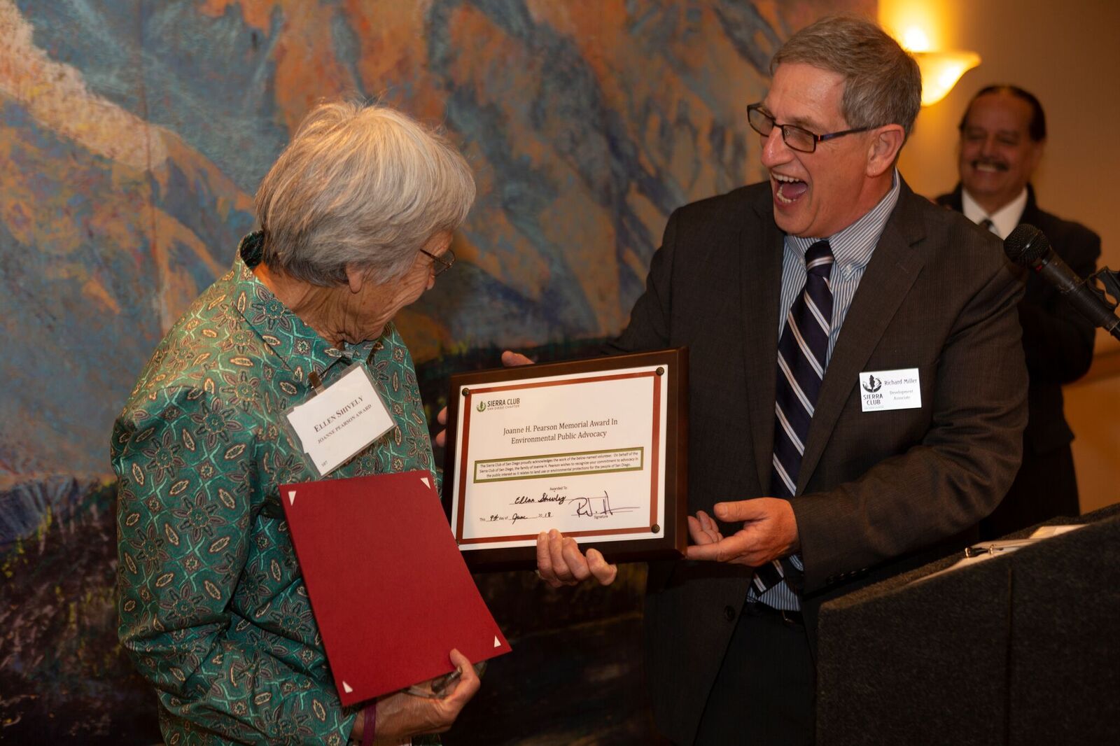 This year marked the first Joanne H. Pearson Memorial Award in Environmental Public Advocacy. The Award will be presented annually to a Sierra Club San Diego volunteer who is committed to protecting public rights as they relate to land use or environmental protections in the greater San Diego region. The family of Joanne Pearson established the award and its $1000 grant in memory of their mother who was a highly recognized San Diego land use and environmental activist.
