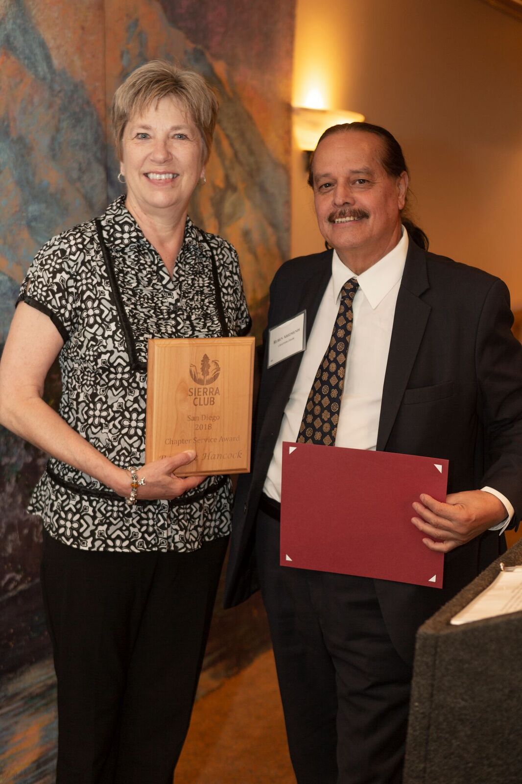 - Derek and Nancy Casady accepting the Conservation Activist Award from Chapter Chair Ruben Arizmendi.