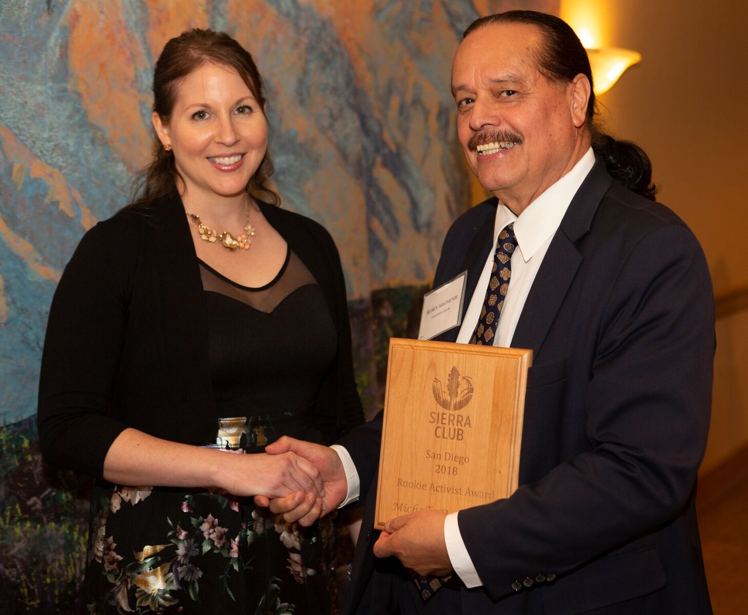 - Michelle De Nicola accepting Rookie Activist Award from Chapter Chair Ruben Arizmendi.