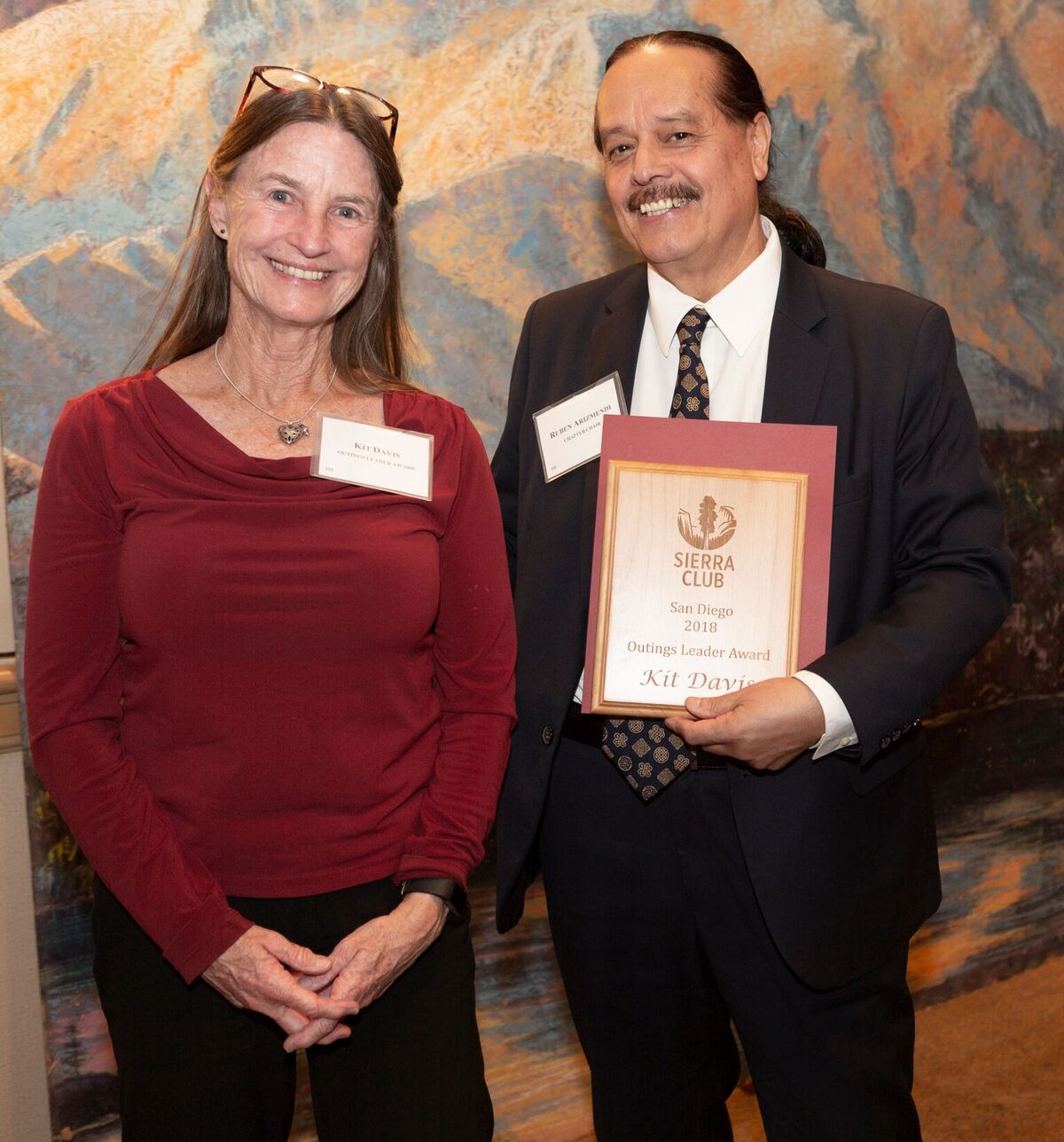 - Kit Davis accepting the Outings Leader Award from Chapter Chair Ruben Arizmendi.