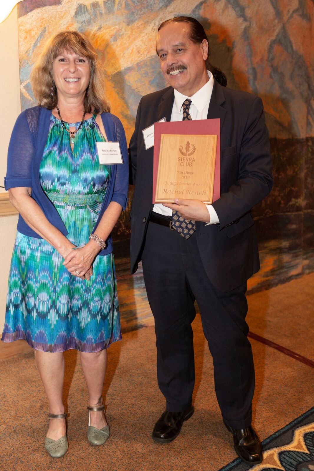 - Rachel Rench accepting the Outings Leader Award from Chapter Chair Ruben Arizmendi.